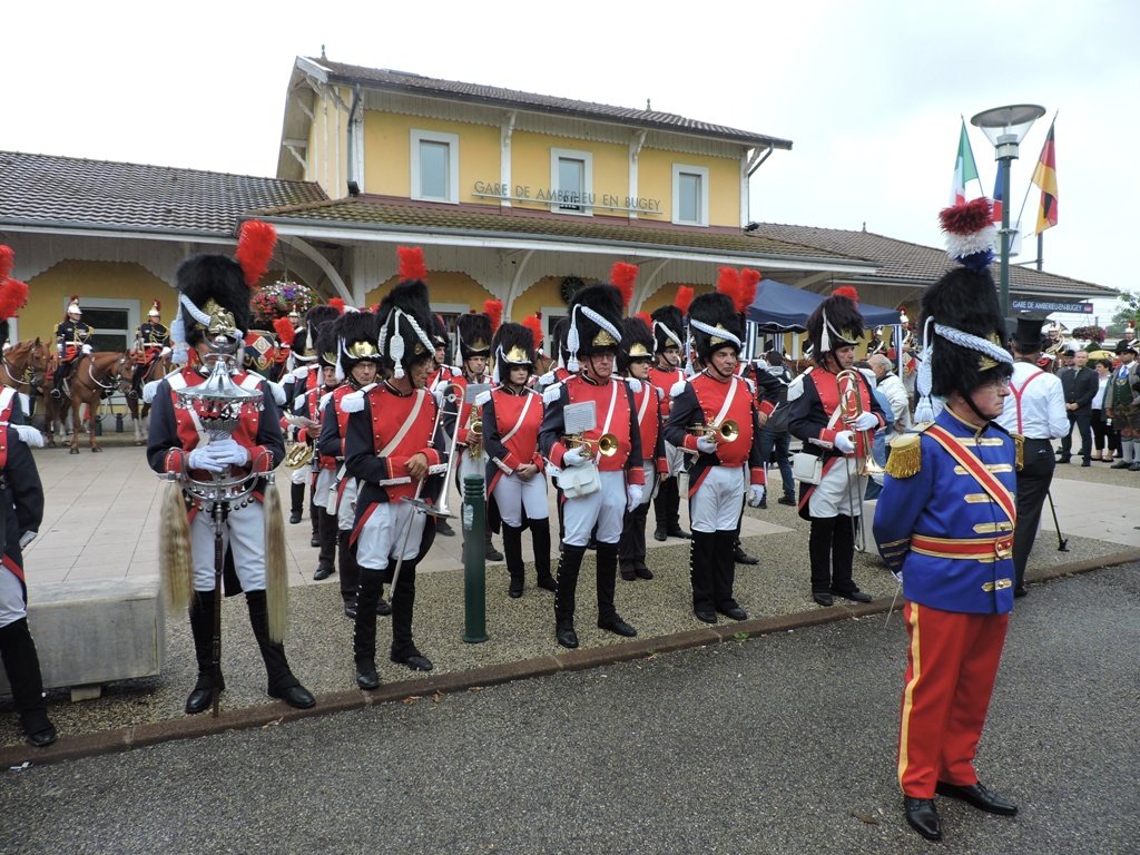 A 12h, la place du Champ-de-Mars, lieu de restauration, était noire de monde. La reconstitution du conseil municipal de juillet 1860 a été jouée par des élus ambarrois, ceux des communes voisines, et le député Damien Abad. L’après-midi, une foule moins nombreuse a assisté au défilé avenue Roger-Salengro, jusque sur le parvis de la gare, où avait lieu une deuxième reconstitution : celle de l’arrivée de Napoléon III et de l’impératrice Eugénie en gare d’Ambérieu.